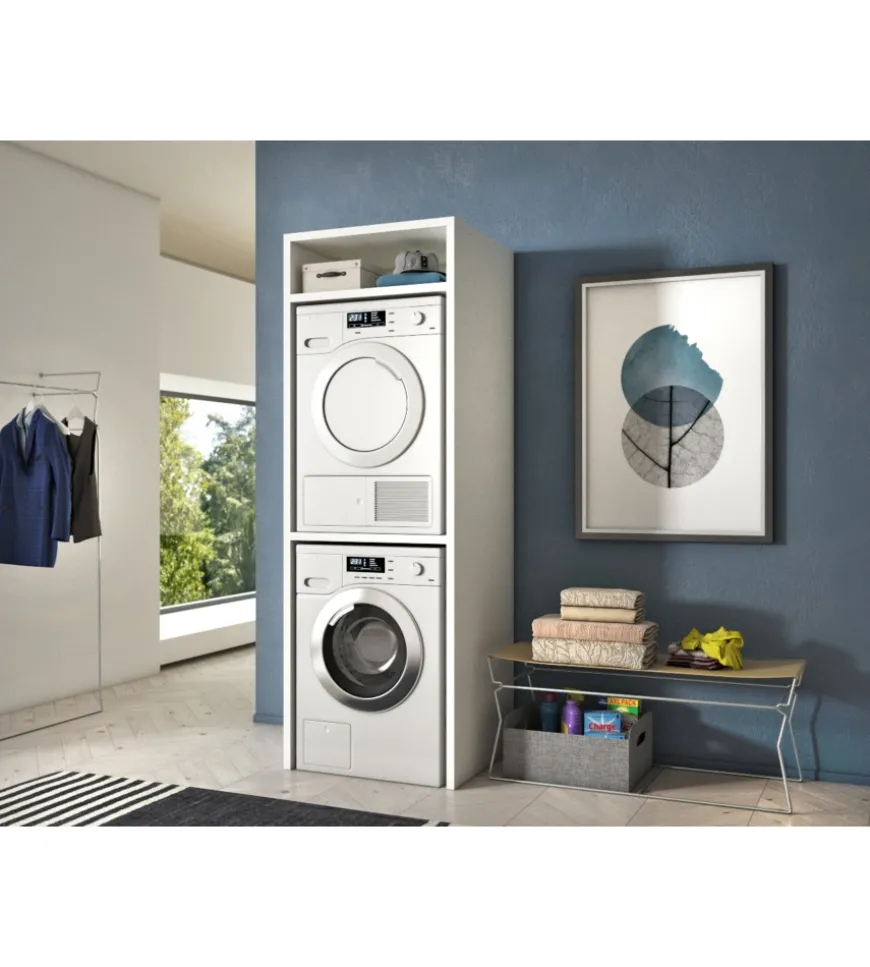 - Mobile per lavatrice e asciugatrice a colonna in truciolare bianco