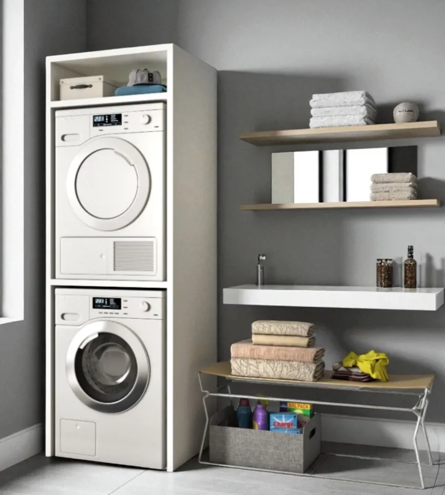 - Ottimizza lo spazio con lavatrice e asciugatrice una sopra l’altra