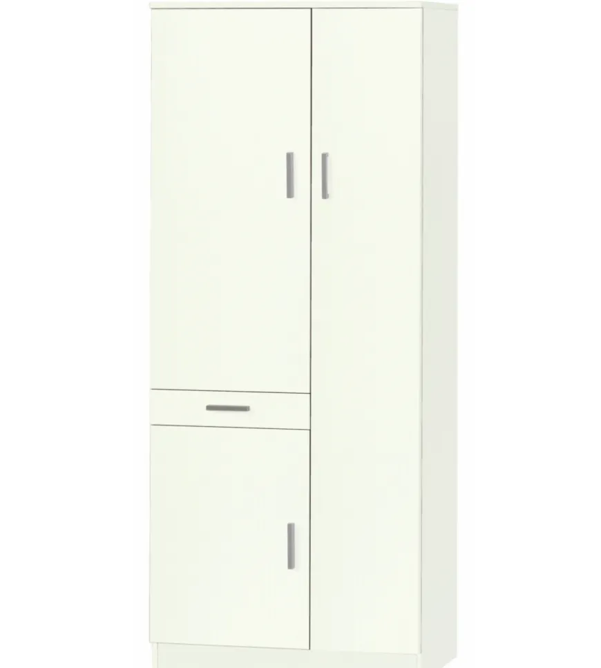 Mobile portabiancheria bianco fiammato a 3 ante e 1 cassetto.
