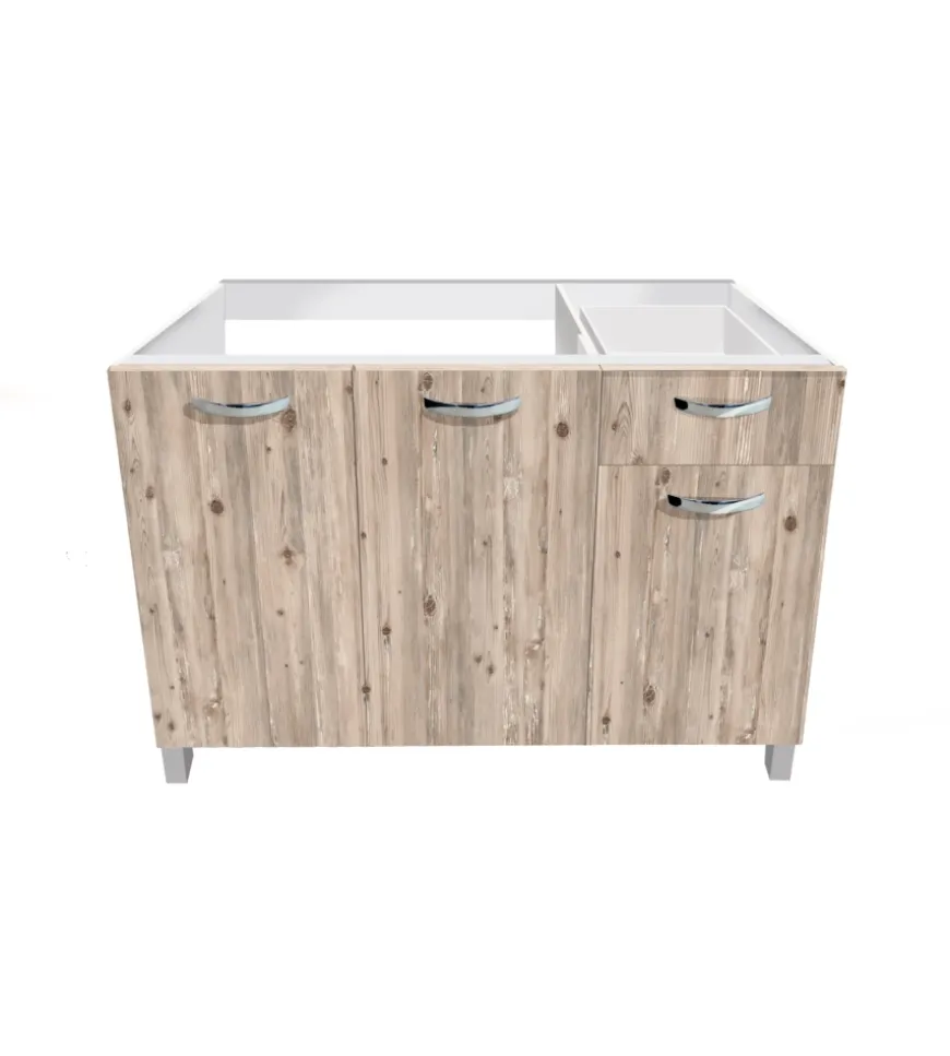 Comodo mobile da cucina di color legno dal design semplice ma elegante, da utilizzare con un lavello da appoggio di 120 cm.