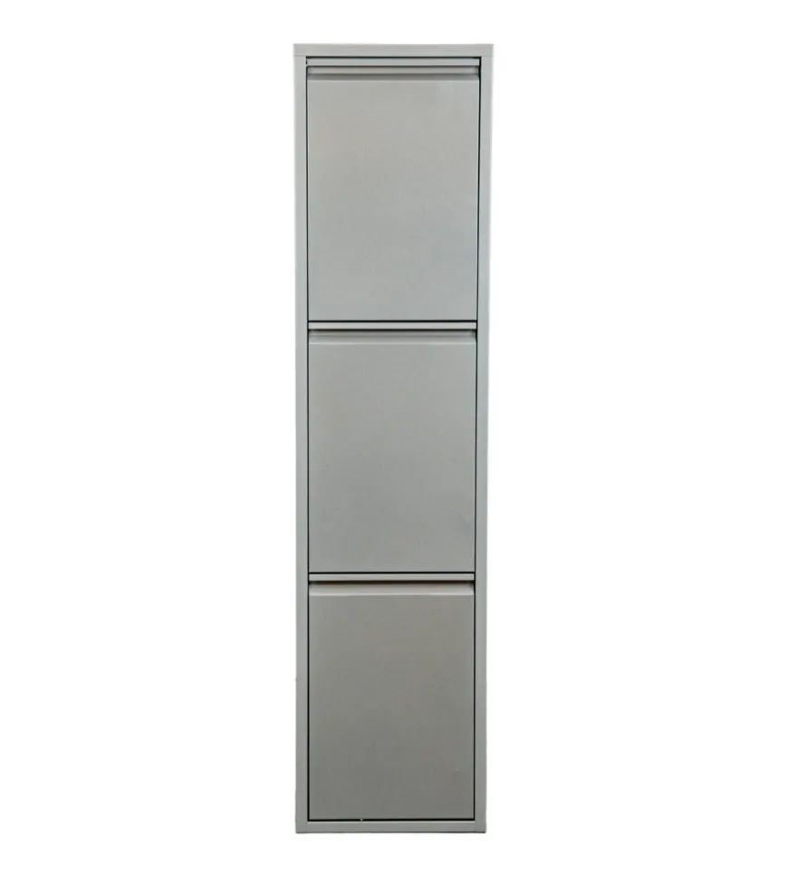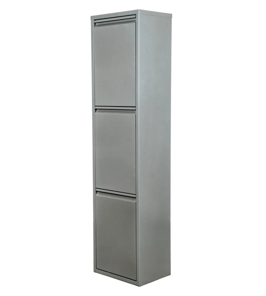Mobile con tre secchi per la raccolta differenziata in kit di montaggio pratico da montare, con struttura in acciaio è l’ideale per essere posizionato in spazi esterni, in garage o cantine.