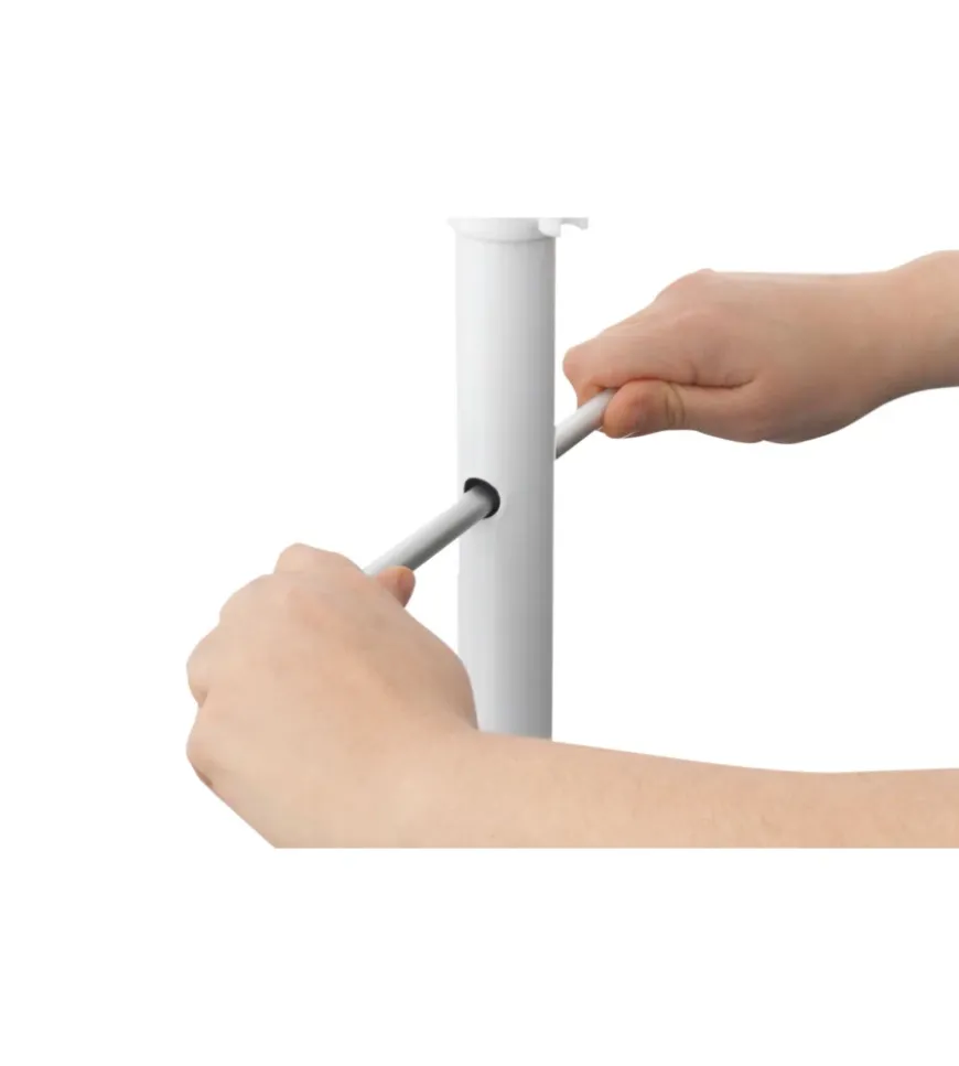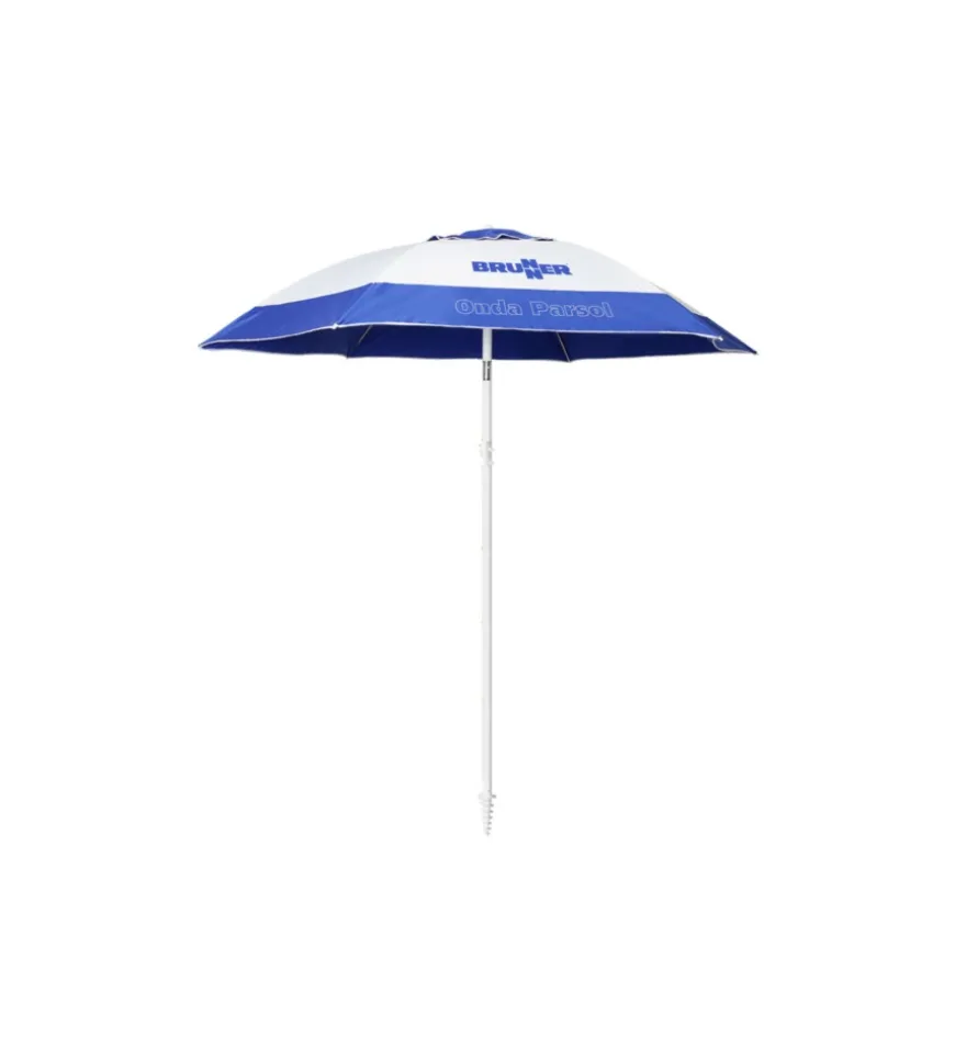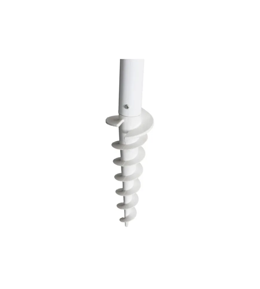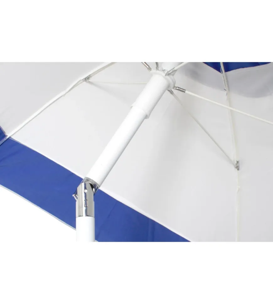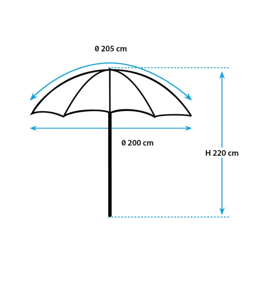 Moderno ombrellone realizzato in resistente tessuto sintetico e struttura molto stabile a 6 raggi. Stelo molto robusto in acciaio verniciato a polvere Ø 32 mm con snodo in alluminio e puntale a vite per terreni sabbiosi. Ottima resistenza al vento grazie al soffietto di scarico integrato. Con borsa per il trasporto.