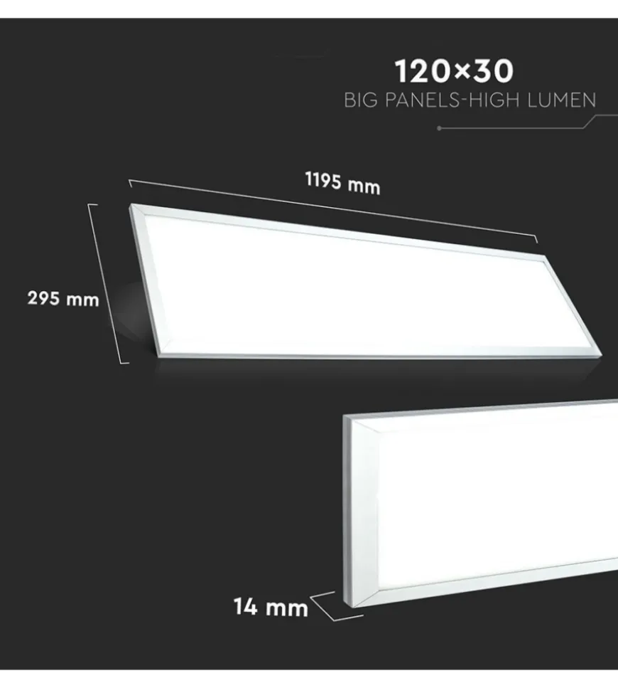 Pannello led 29 W 6000 k 3960 lm con driver incluso, 1195x295x12,5 mm.