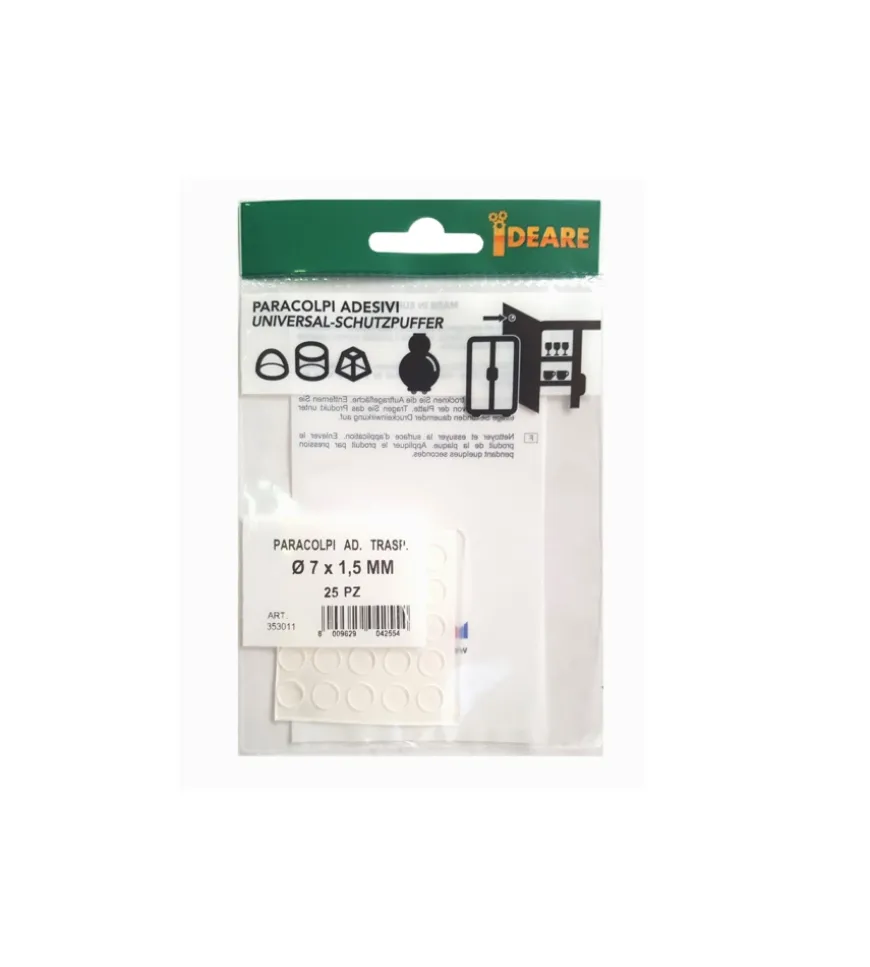 Paracolpi adesivi tondi trasparenti ø 7 mm. – spessore 1,5 mm. – 25 pz.