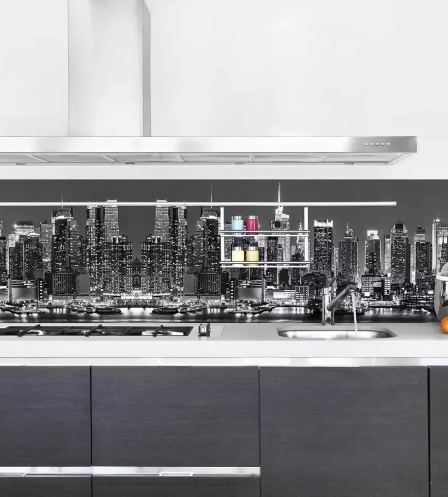 Paraschizzi adesivo da cucina fantasia “skyline”, 190×60 cm