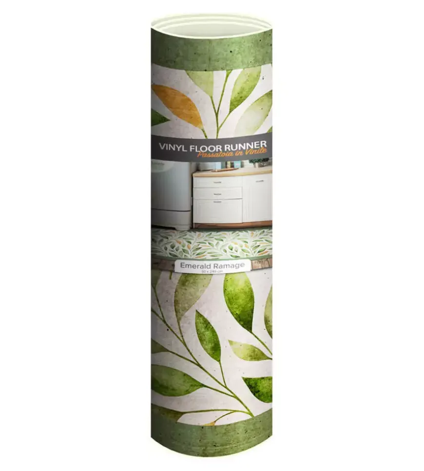 Passatoia in vinile “runner” fantasia “emerald ramage”, 240×50 cm