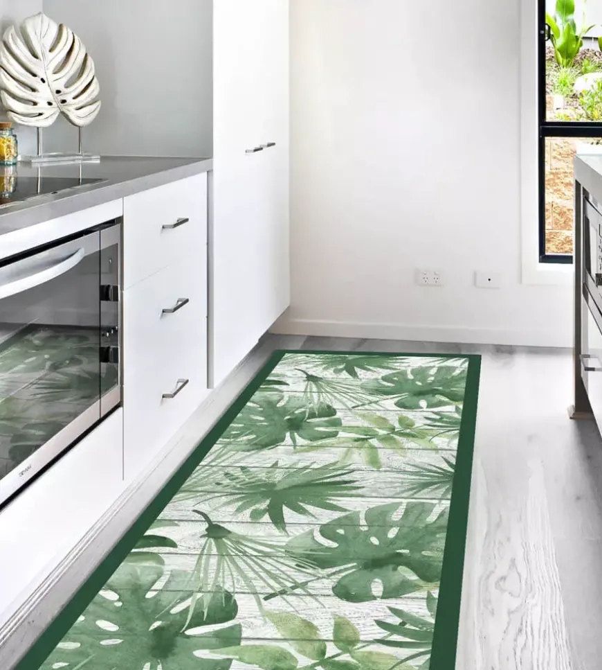 Passatoia in vinile "runner" fantasia "green tropical", 120x50 cm
