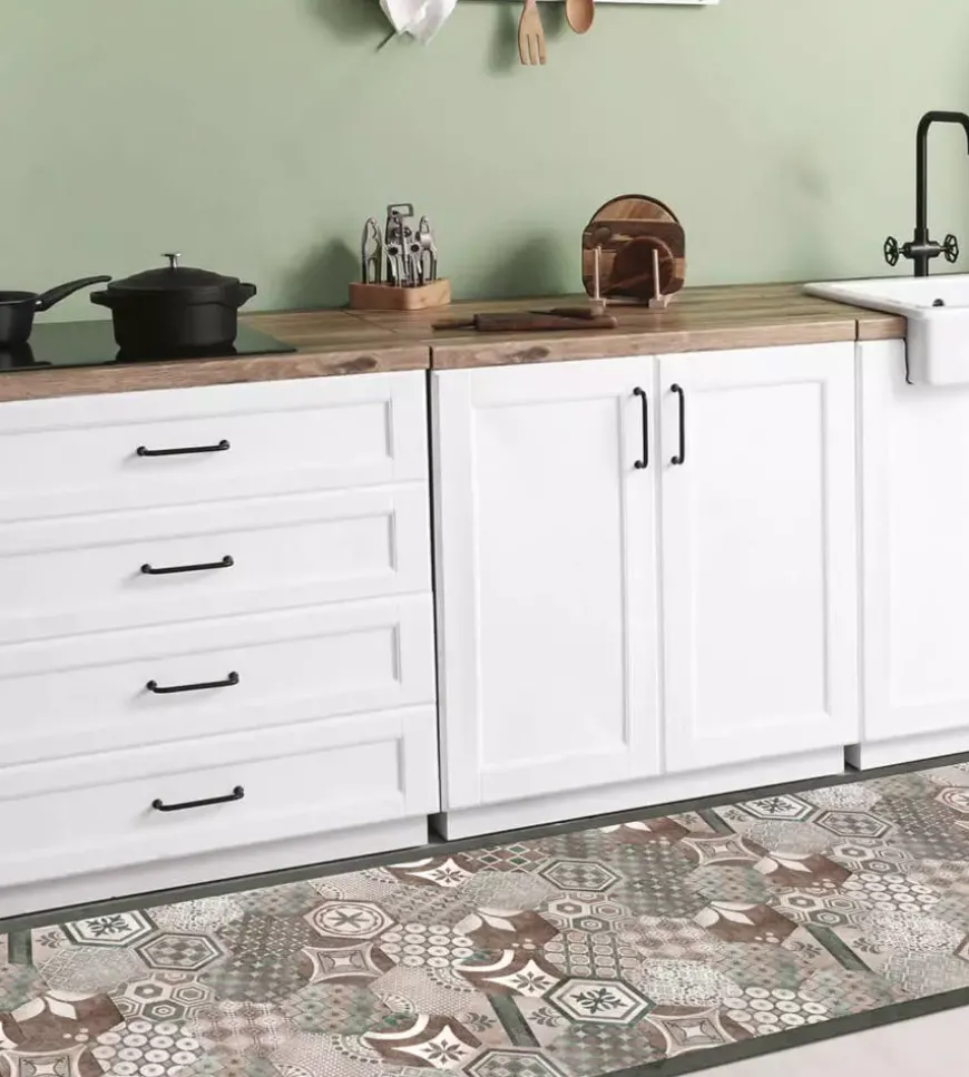 Passatoia in vinile "runner" fantasia "hexagonal green tiles", 180x50 cm