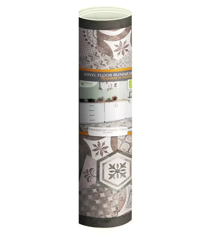 Passatoia in vinile “runner” fantasia “hexagonal green tiles”, 180×50 cm