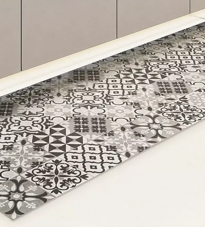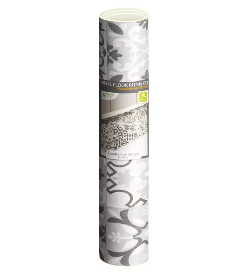 Passatoia in vinile “runner” fantasia “piastrelle grigie”, 120×50 cm