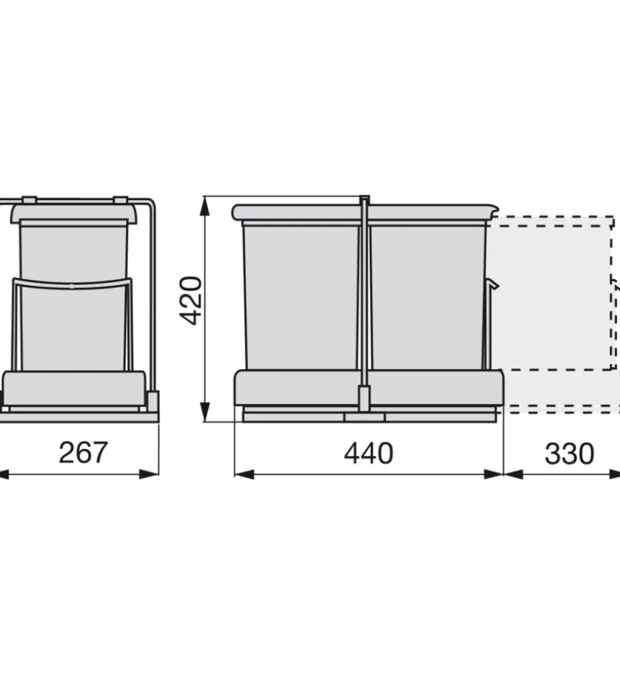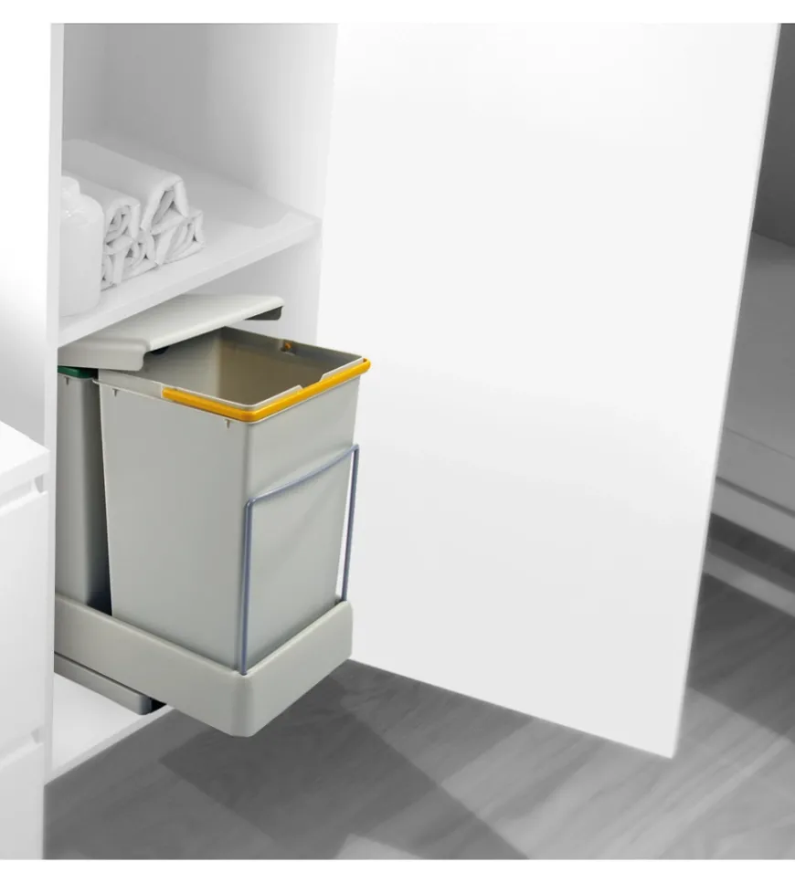 La base estraibile di questi contenitori per immondizia si fissa sulla parte inferiore dei moduli facendo si che i contenitori siano di facile accesso grazie all’estrazione ed apertura automatica degli stessi, che si aziona aprendo l’anta del modulo. Da montare all’interno del modulo da cucina. Capacità: 2 contenitori da 14 litri.
