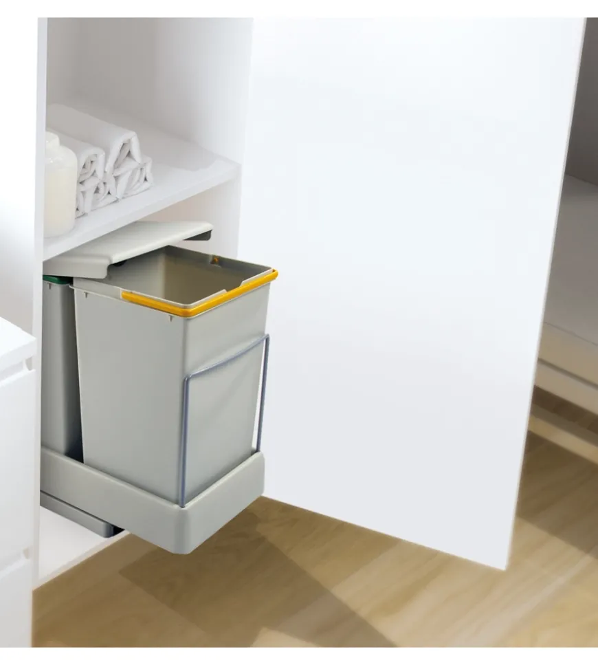 Pattumiera per raccolta differenziata di rifiuti domestici progettata per essere montata all’interno dei mobili da cucina.