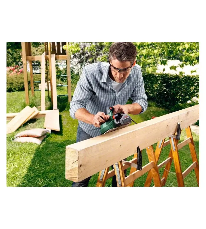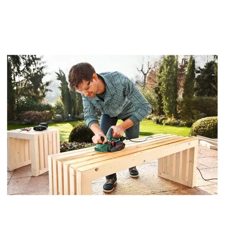 Pialletto da 680 Watt, compatto e potente, per applicazioni impegnative, con profondità di passata fino a 2 mm. Espulsione trucioli da ambedue i lati verso destra o sinistra a seconda della posizione di lavoro. Il sistema di taglio brevettato Woodrazor, per una facile piallatura senza spreco di energie, una sostituzione della lama più semplice e più veloce e un’elevata qualità della superficie. Il sistema di soffiatura trucioli impedisce l’intasamento dei trucioli, per lavorare senza interruzioni. 3 Scanalature a V per una facile bisellatura dei bordi. Proteggilama ad apertura automatica: impedisce il danneggiamento del pezzo in lavorazione o della lama quando si appoggia il pialletto. Profondità di battuta fino a 8 mm. Manopola combinata per la regolazione della profondità di passata anche durante la piallatura e per una guida sicura del pialletto. Con migliore regolazione della profondità di piallatura e vano porta-chiavi e porta-lame.