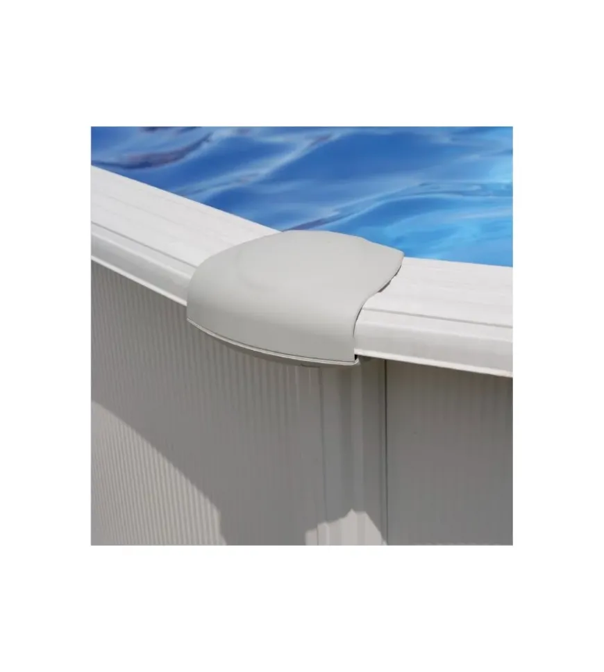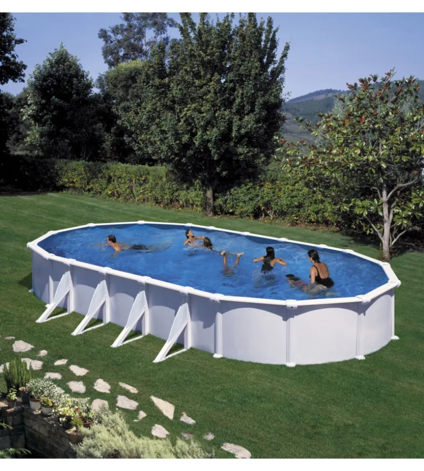 - Piscina ovale con parete in acciaio e decorazione in colore bianco