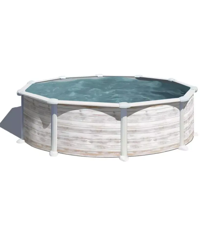 - Piscina rotonda con parete in acciaio e decorazione in nordico