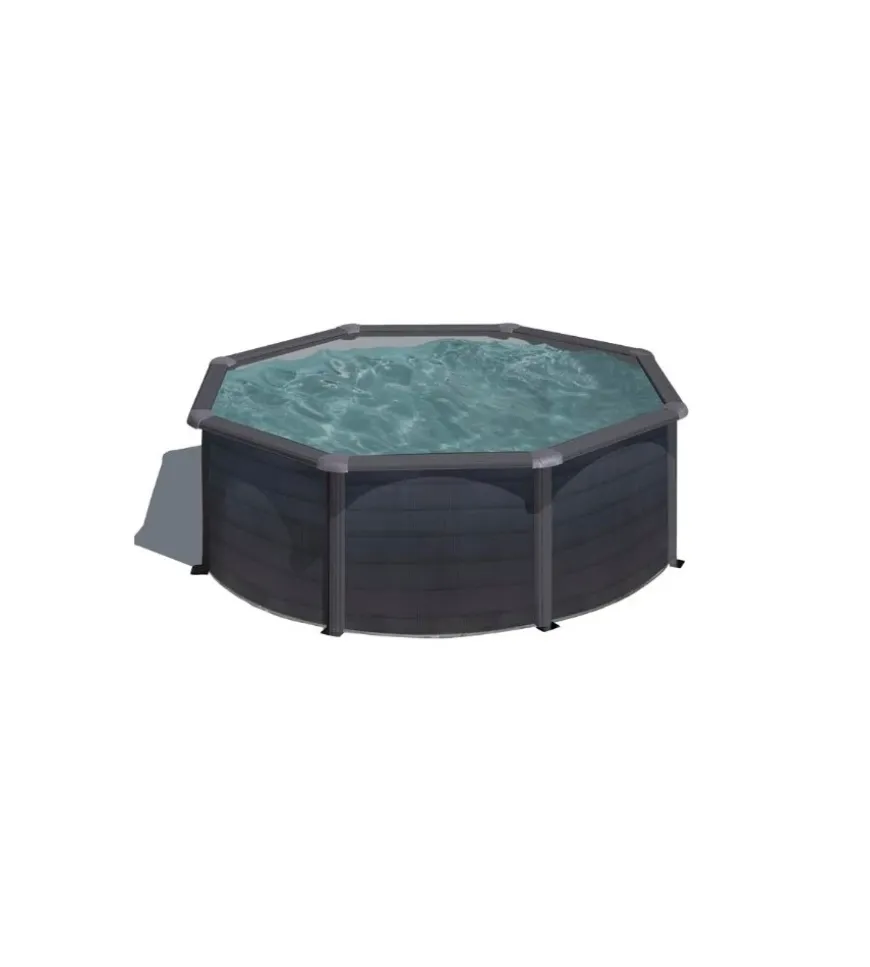 - Piscina rotonda con parete in acciaio e decorazione in colore grafite