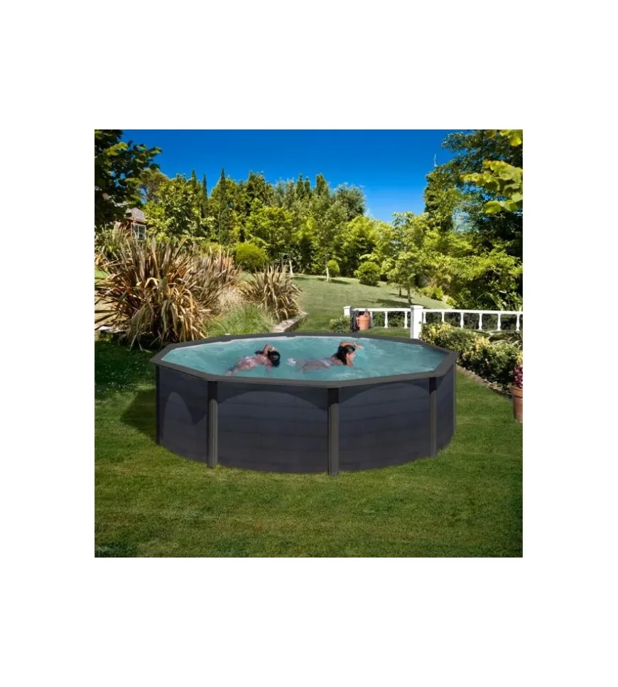 - Piscina rotonda con parete in acciaio e decorazione in colore grafite