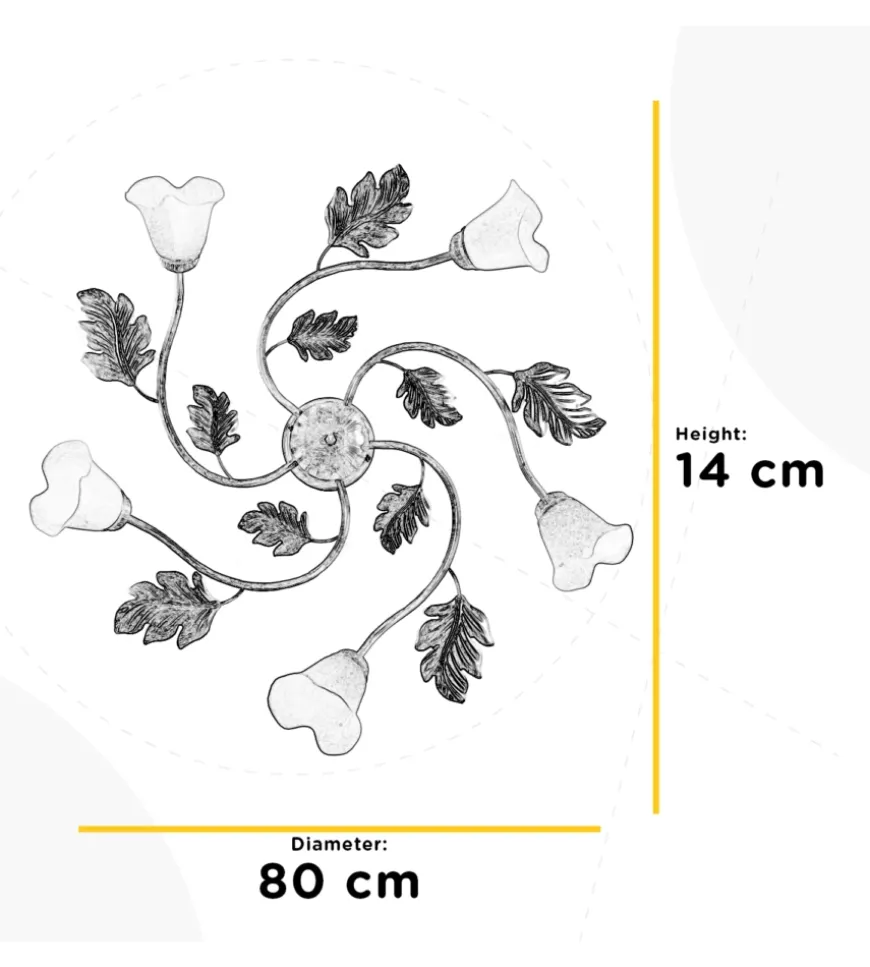 - Tipo di illuminazione: 5XE14 (lampadine non incluse)