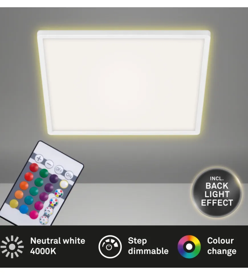 Plafoniera a LED “Slim”, LED RGB Bianco, 42×42 cm.
