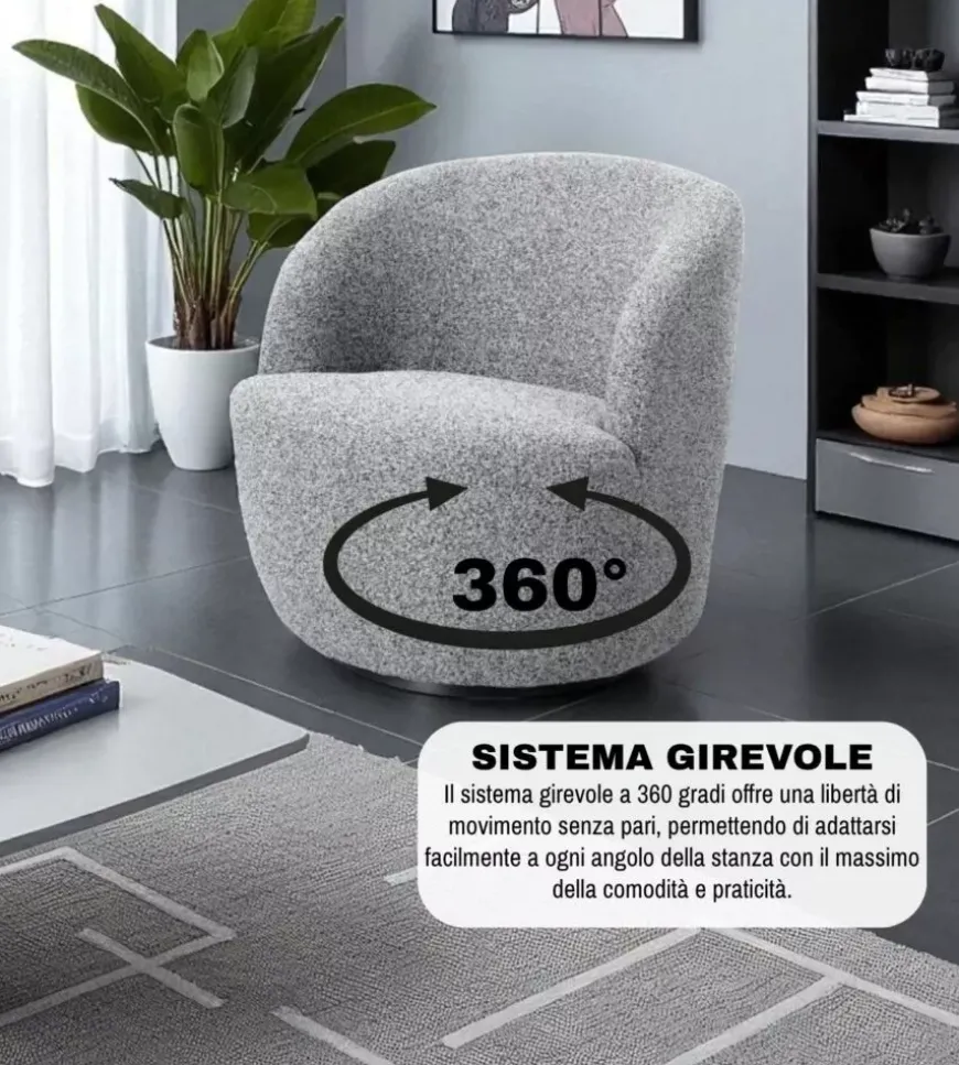 - Poltrona girevole 360 gradi “Aura” in colore grigio
