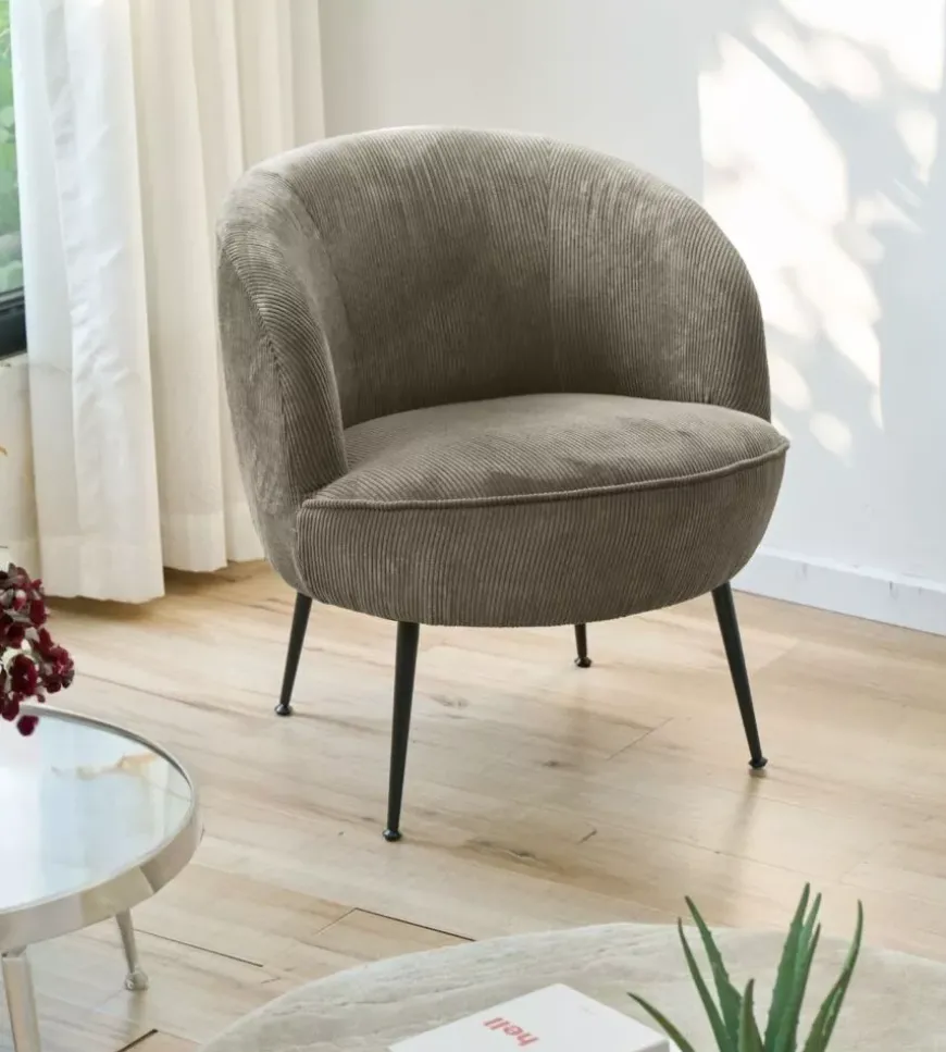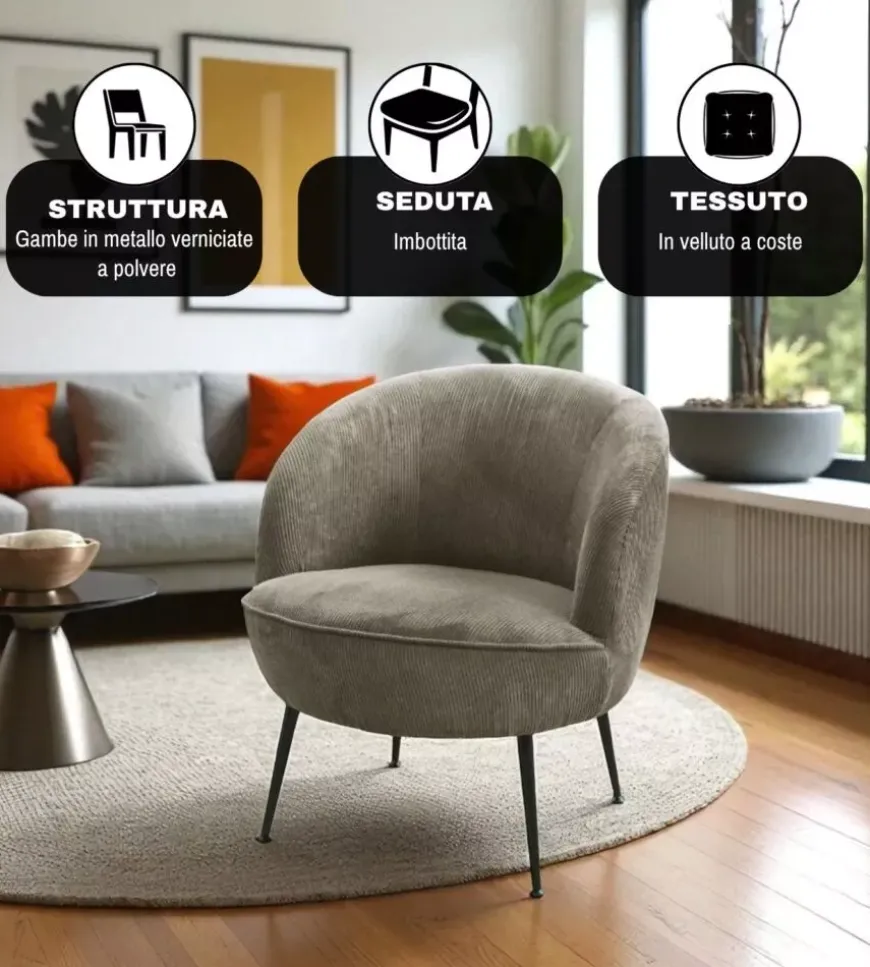 - Poltroncina “Nora” in velluto a coste grigio