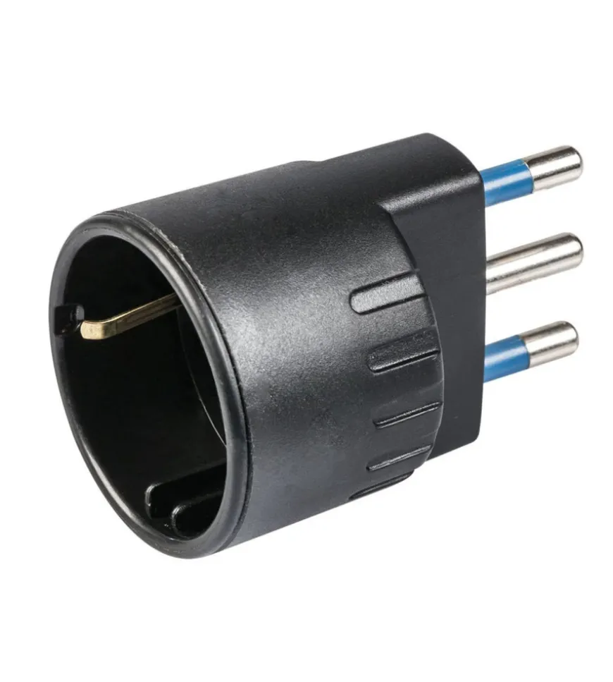Adattatore con spina 16 A 2P+T e presa 10 – 16 A 2P+T (standard Italiano 10 A e tedesco 16 A con terra laterale) 250 V~. Colore: nero.I contatti di spina e presa sono dotati di apposite protezioni per la sicurezza dei bambini.Qualità prodotto certificata dall’Istituto Italiano del Marchio di Qualità (IMQ). PLUS PRODOTTO: # Made in Italy# Certificato dall’Istituto Italiano del Marchio di Qualità (IMQ)# I contatti di spina e presa sono dotati di apposite protezioni per la sicurezza dei bambini