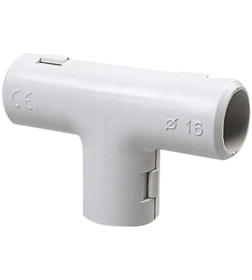 Giunto a T ispezionabile per tubi rigidi diametro 16 mm, IP40.Realizzato in materiale termoplastico autoestinguente ad alta resistenza meccanica.Colore: grigio.Il giunto si apre per facilitare il collegamento dei tubi.IP40: protezione contro i corpi solidi con diametro superiore a 1 mm. PLUS PRODOTTO: # Made in Italy# IP40: protezione contro i corpi solidi con diametro superiore a 1 mm# Ispezionabile