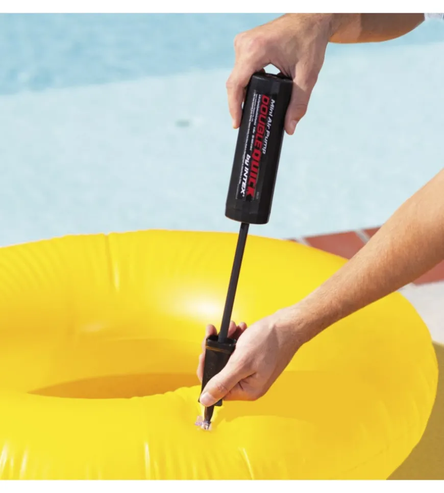 La pompa manuale Double Quick Mini, alta 29 cm, è compatta e leggera, ideale per gonfiare piccoli giochi e accessori gonfiabili. La sua funzione di gonfiaggio sia in spinta che in trazione permette di gonfiare rapidamente e senza sforzo.