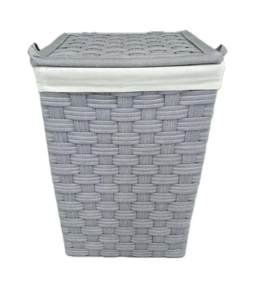 - Portabiancheria grande in TNT grigio con finitura in finto rattan