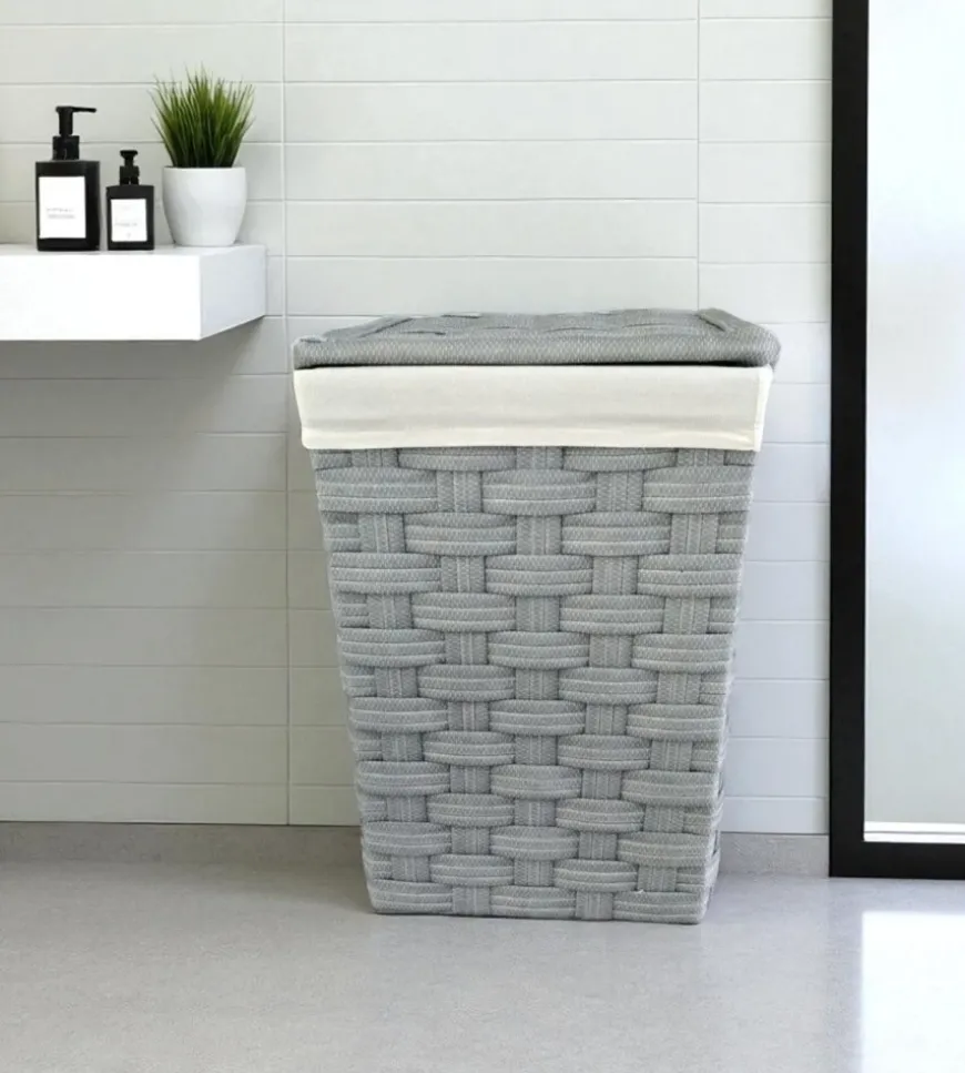 - Portabiancheria piccolo in TNT grigio con finitura in finto rattan