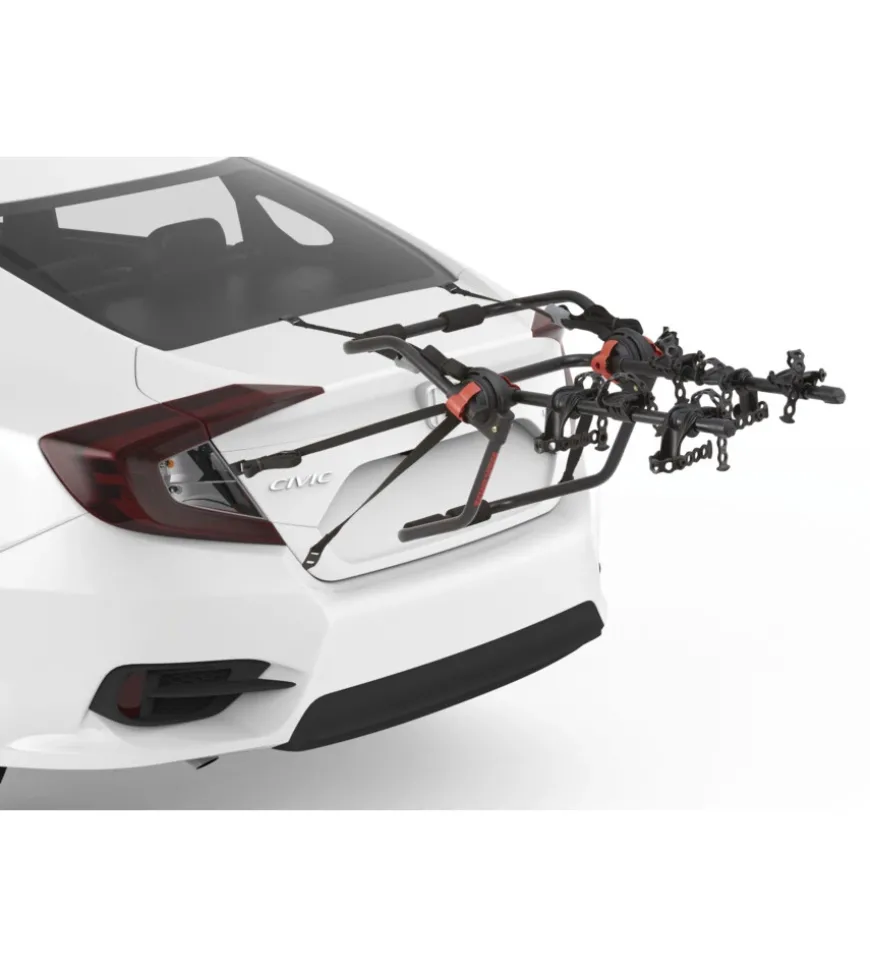 Portabici posteriore ideale per il trasporto di 3 bici, dotato di sistema Quicktrigger che rende l’installazione facile e veloce. Lo StableCradles integrato tiene saldamente le bici in posizione. Basi d’appoggio imbottite e staffe di fissaggio in acciaio verniciato proteggono la tua auto. Bracci richiudibili per un minor ingombro quando non in uso.