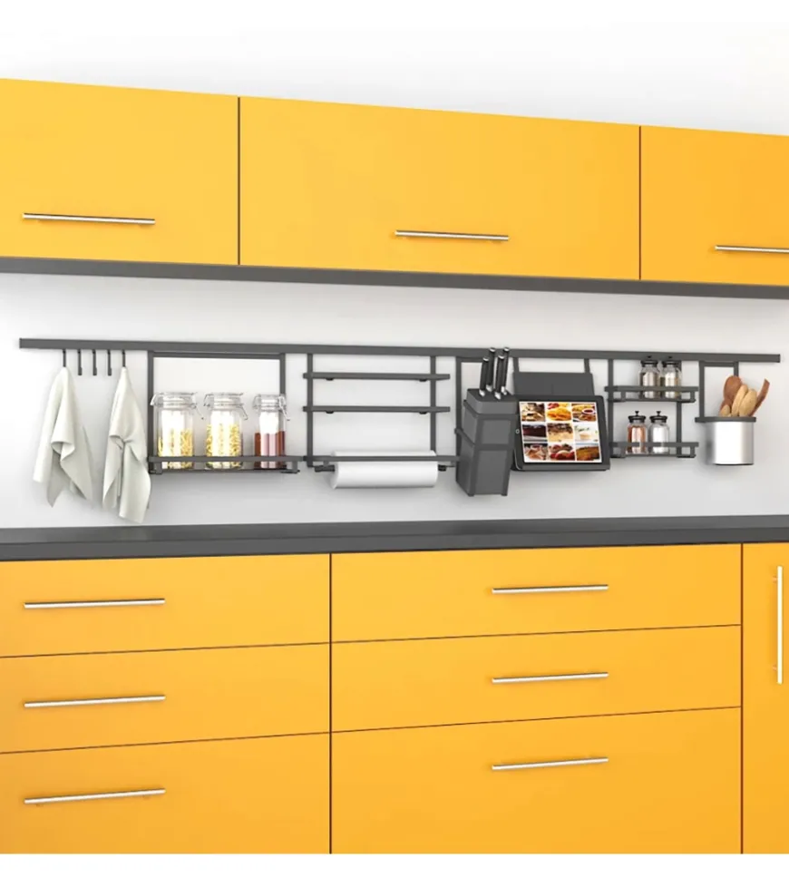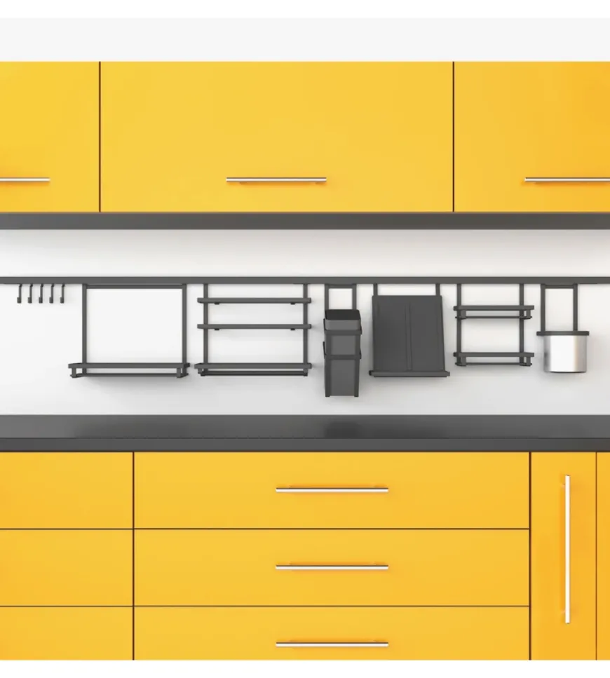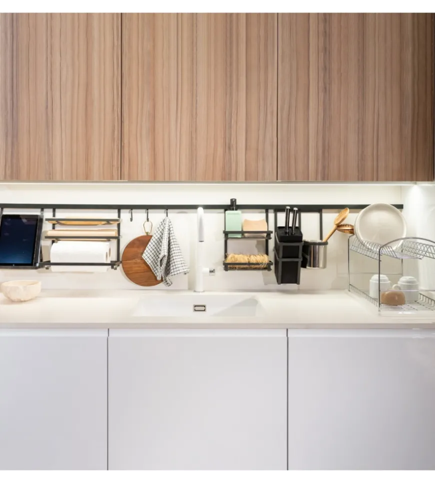 Abbinalo agli altri elementi della serie Titane per creare la barra porta oggetti più adatta per la tua cucina.