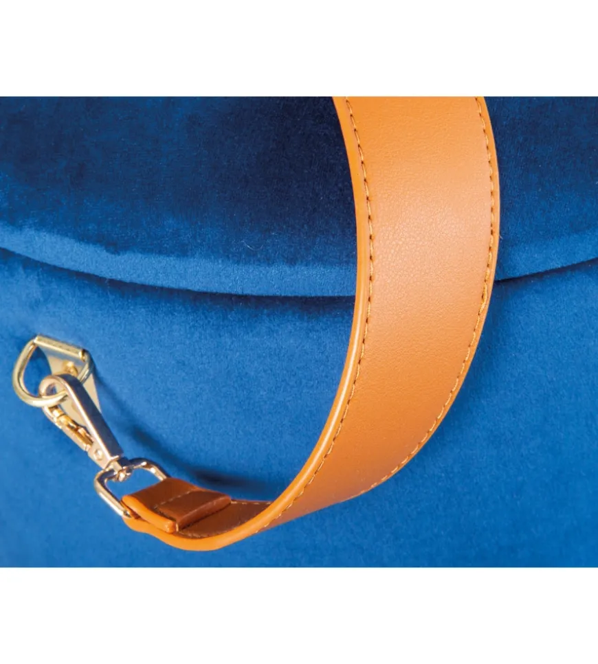 Pratico pouff dal design moderno, estremamente confortevole grazie alla sua copertura in velluto. Al suo interno potrai tenere coperte e cuscini, da avere sempre a portata di mano vicino al divano. Il raffinato cinturino in similpelle migliora l’aspetto dello sgabello e consente un facile trasporto quando necessario.