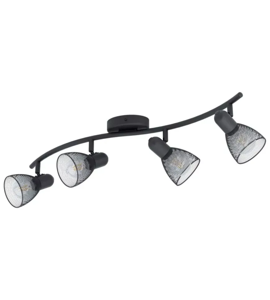 Asta con quattro faretti “Carovigno” in metallo nero. Moderno ed originale, questa plafoniera può essere montata in soggiorno, cucina o camera da letto. Attacco lampadine, non incluse, E14. Tensione di rete e di esercizio 220-240V, 50/60Hz