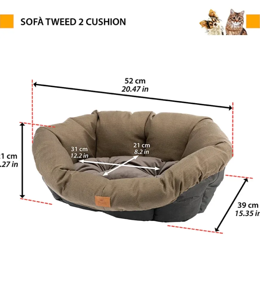 - Realizzato in tessuto robusto e resistente all’usura, effetto Tweed, con parte centrale in soffice velluto