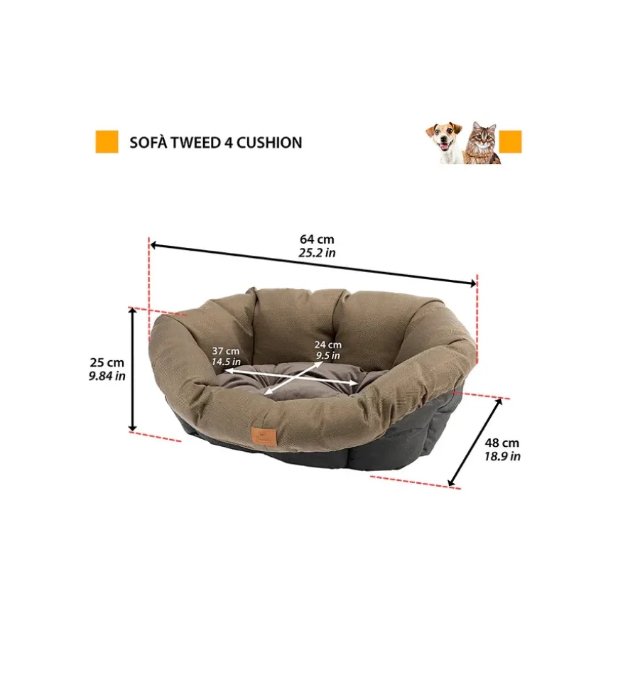 - Realizzato in tessuto robusto e resistente all’usura, effetto Tweed, con parte centrale in soffice velluto