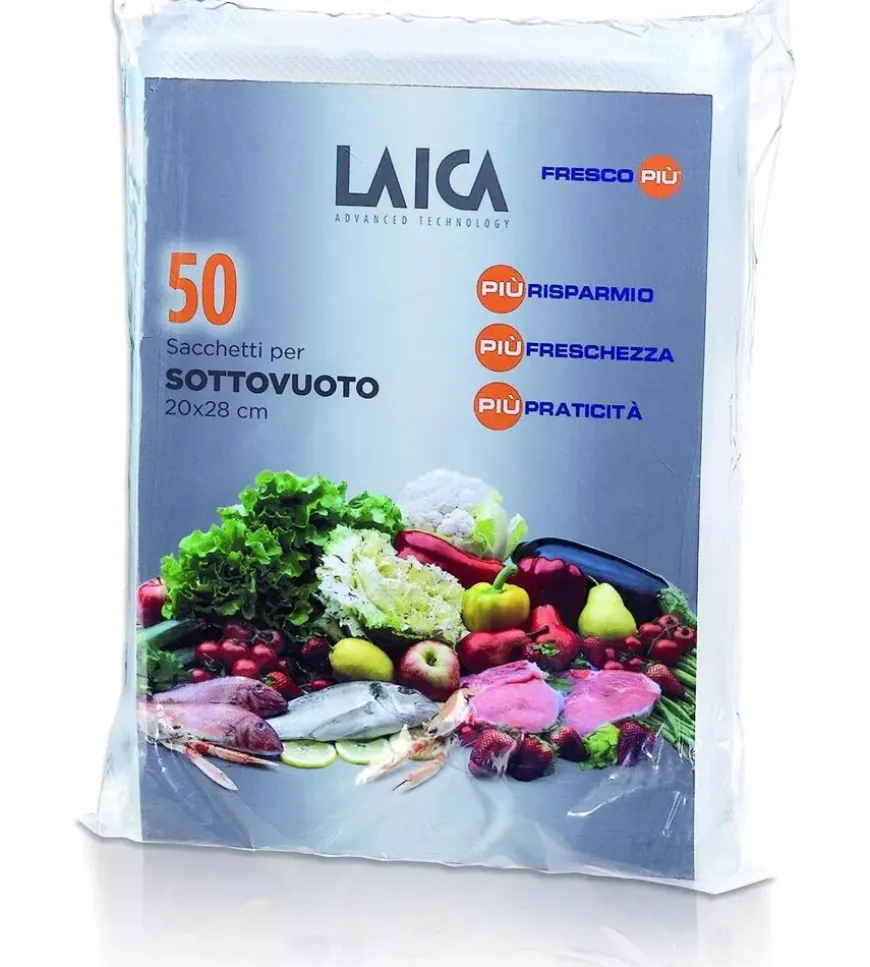 Sacchi per sottovuoto Laica confezione da 50 pezzi, 20×28 cm.