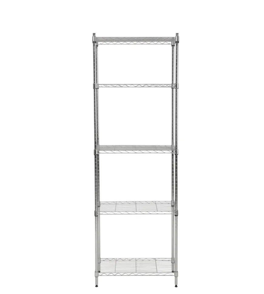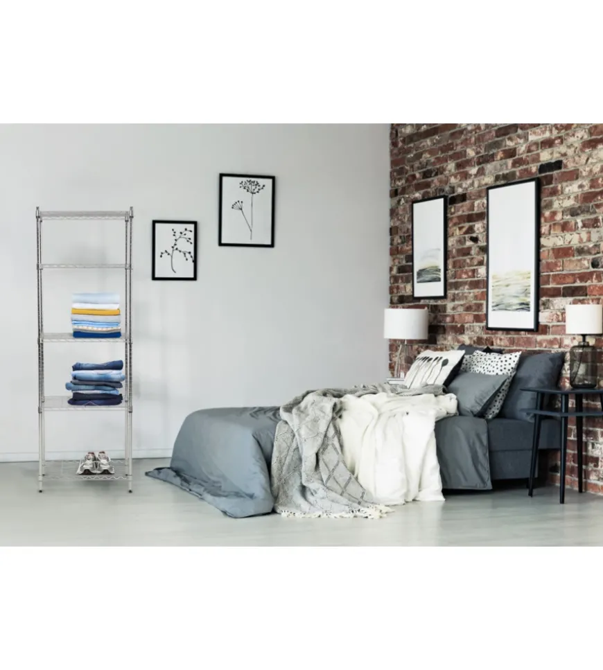 Lo scaffale in metallo cromato a 5 ripiani (59x34x174 cm) è una soluzione pratica e versatile per organizzare gli spazi in casa. Resistente e facile da montare, è ideale per la cucina, la dispensa, il bagno o il garage, grazie alla sua capacità di sopportare ambienti umidi e sbalzi di temperatura. Ogni ripiano regge fino a 30 kg, offrendo ampio spazio per riporre oggetti di vario tipo. Il suo design moderno si adatta perfettamente a stili industriali e contemporanei, ed è perfetto anche come libreria. Facile da montare senza attrezzi, rappresenta un’ottima scelta per chi cerca funzionalità e stile.