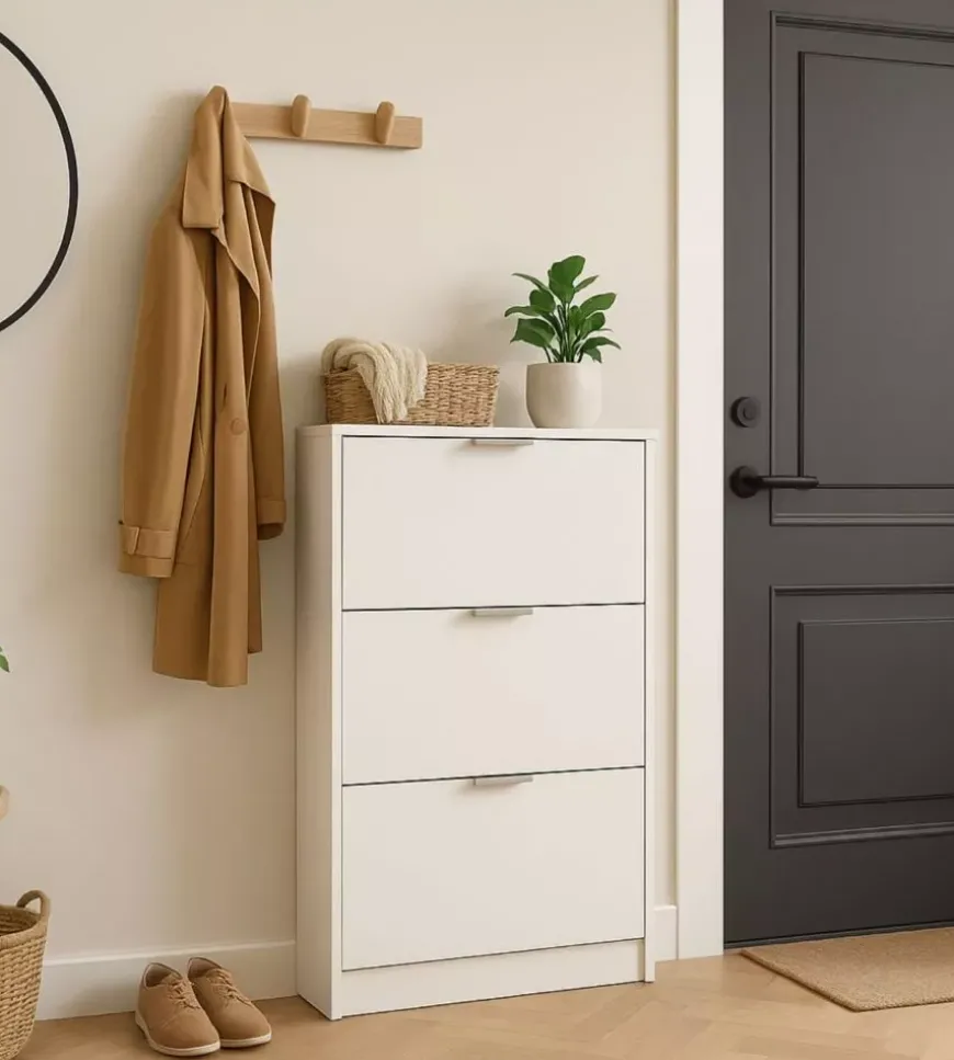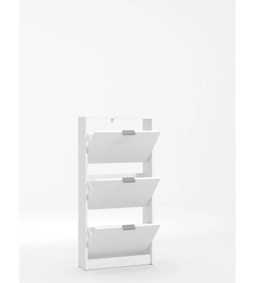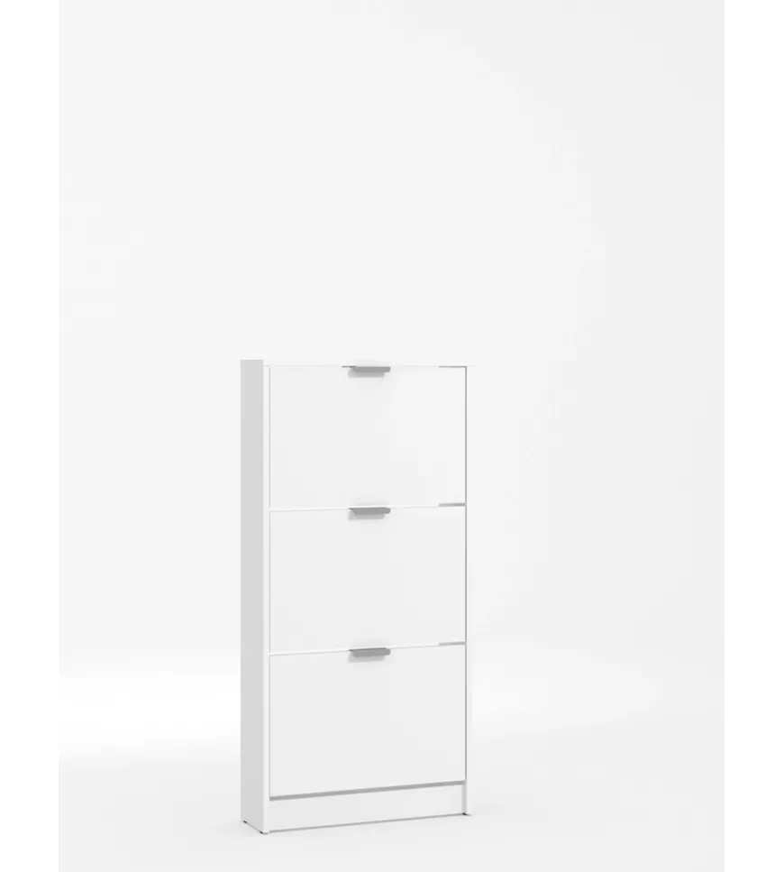 La scarpiera bianca con 3 ante a ribalta singola è la soluzione ideale per chi desidera ottimizzare lo spazio senza rinunciare all’ordine. Con una profondità di soli 18 cm, è perfetta per essere collocata dietro una porta o in spazi stretti e poco utilizzati, adattandosi facilmente a ogni ambiente. Compatta, pratica e funzionale, questa scarpiera salvaspazio consente di tenere le scarpe sempre in ordine con il minimo ingombro. La finitura bianca opaca la rende versatile e facilmente abbinabile a qualsiasi stile d’arredo, dal moderno al classico. Realizzata con legno proveniente da fonti responsabili e certificata FSC, è una scelta sostenibile oltre che esteticamente curata. Per garantire la massima sicurezza, si consiglia il fissaggio a muro. Dimensioni: 58x18x119 cm.
