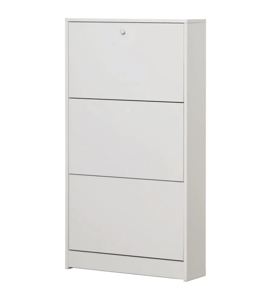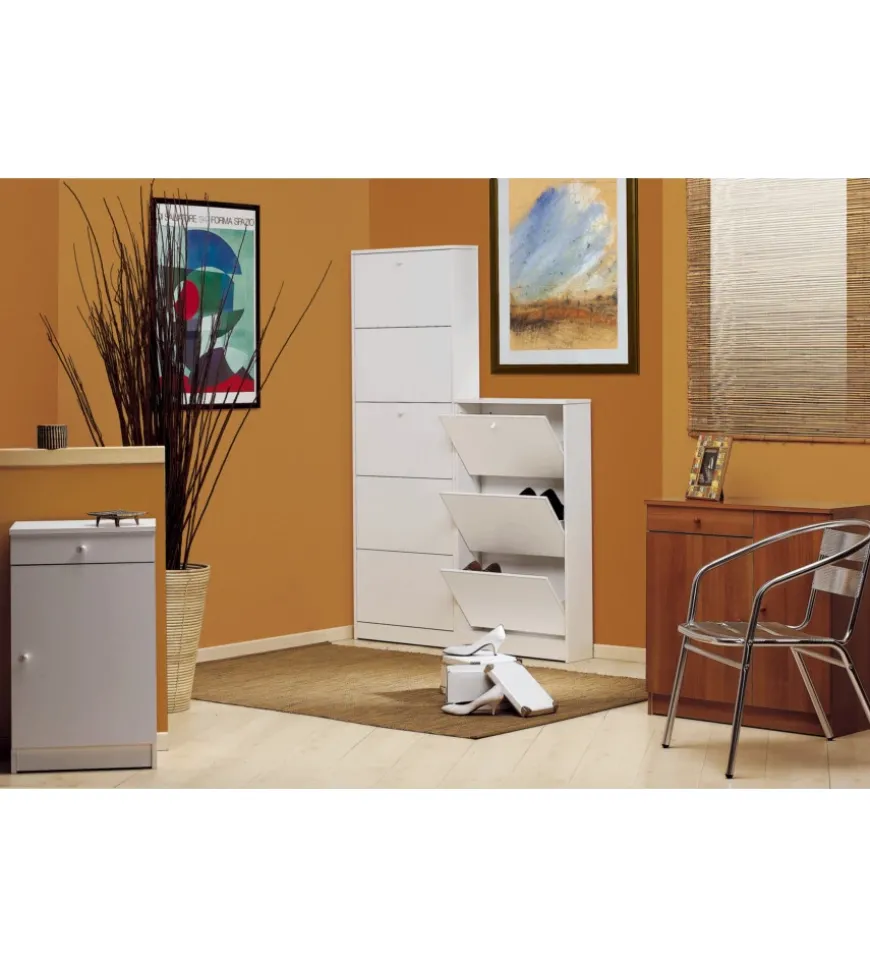 Scarpiera 3 ante in colore bianco con singola profondità e apertura sincronizzata.