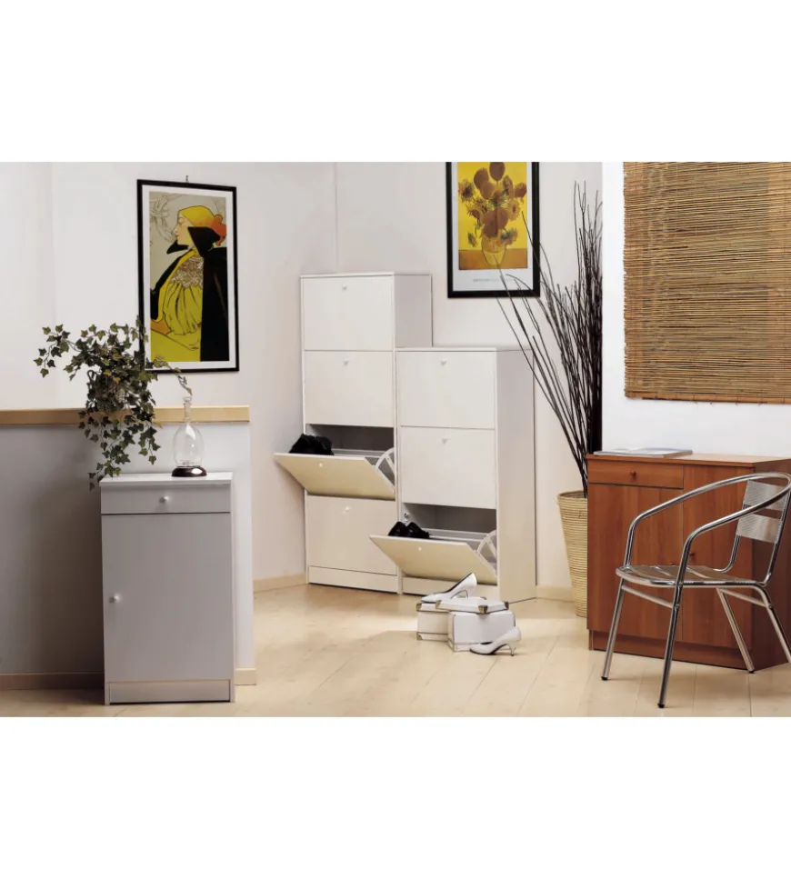 Scarpiera a 3 ante di altezza da 121 cm con capacità fino a 15 paia di scarpe.
