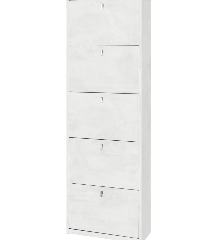 Scarpiera bianca con 5 ante, 63x29x190 cm.