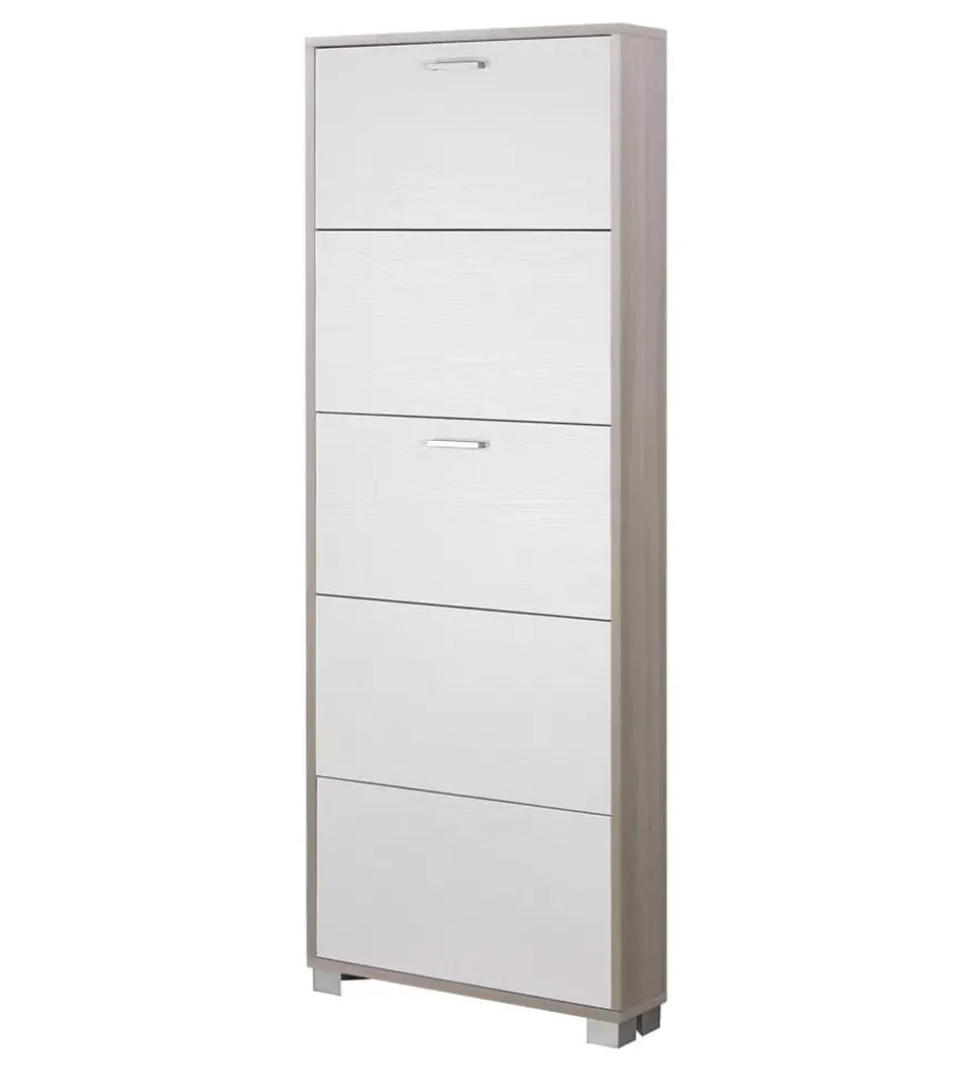 Scarpiera olmo e bianco fiammato con 5 ante, 70x190x18 cm