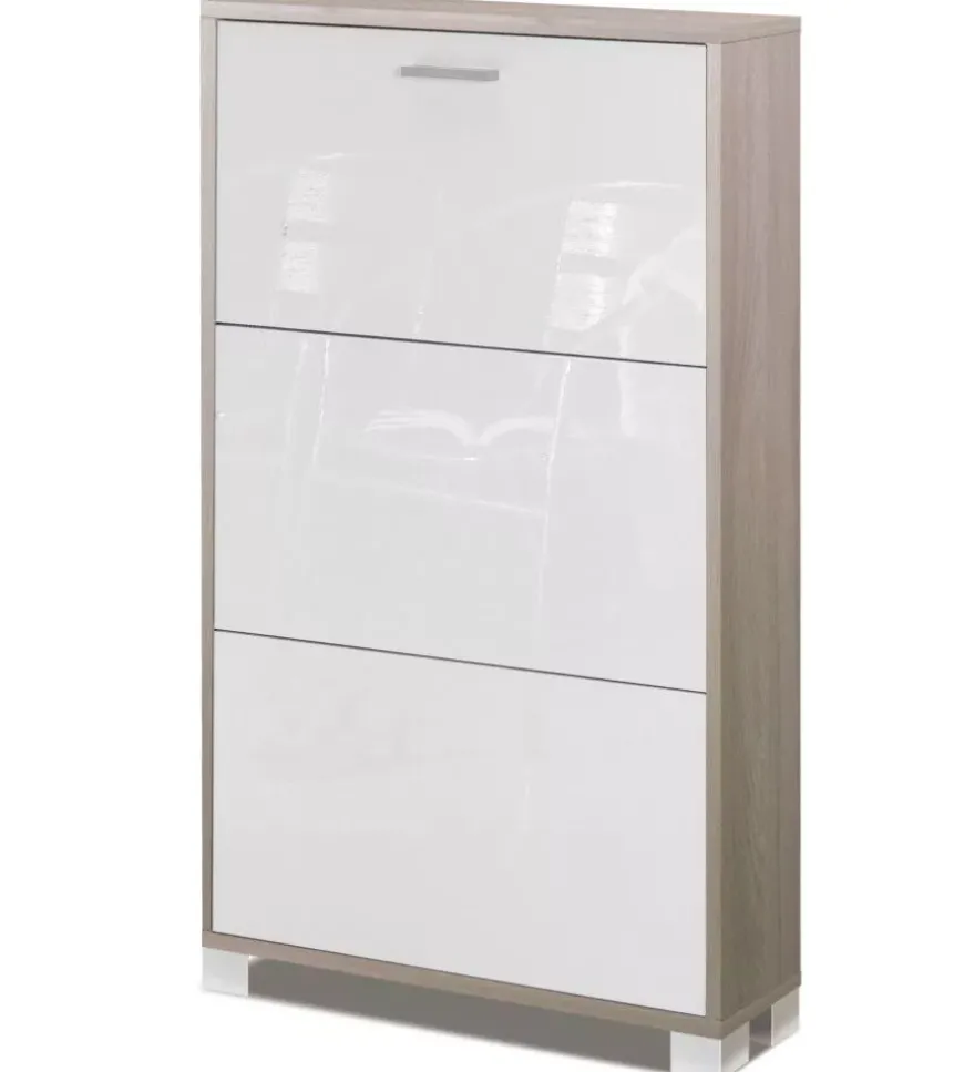 Scarpiera olmo e bianco lucido con 3 ante, 70x118x18 cm