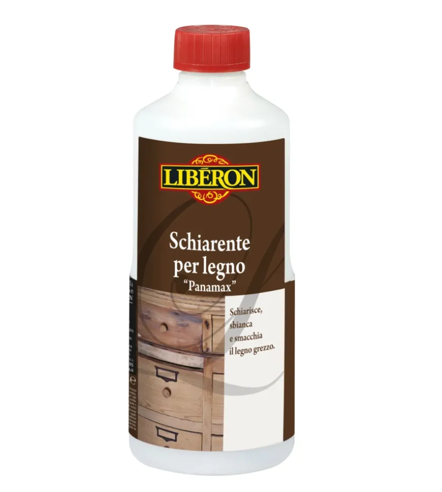 Schiarente per legno – panamax – trasparente – 0,5 litri. Sbianca, smacchia e schiarisce di un tono il legno grezzo. Elimina sul legno ogni macchia anche di ruggine, caffè, inchiostro, muffe e sbianca di una tonalitĂ i legni vecchi. Compatibile con tutte le essenze di legno.