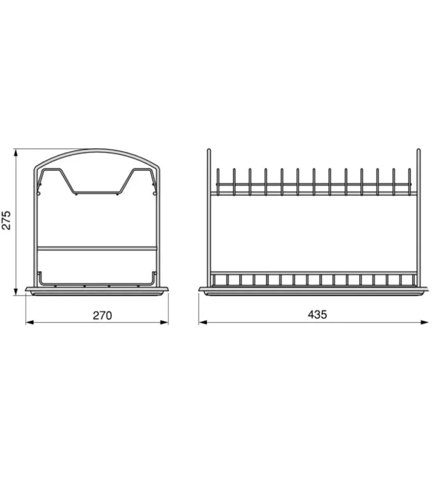 Le dimensioni dello scolapiatti sono 43.5x27x27.5 cm