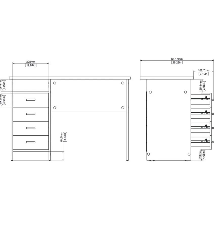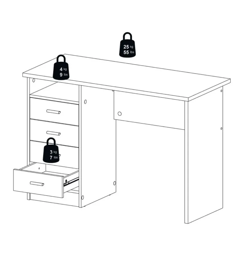 - Materiale: scrivania bianca con quattro cassetti