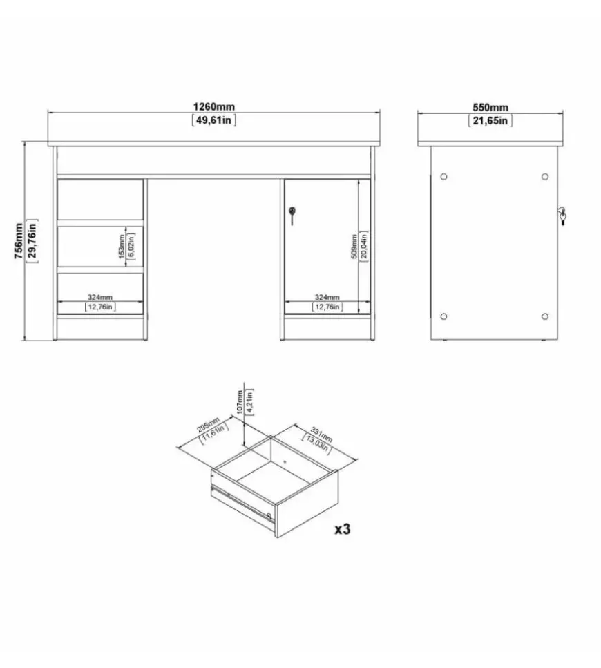 - Dimensioni: 126 x 55 x 75,6 cm