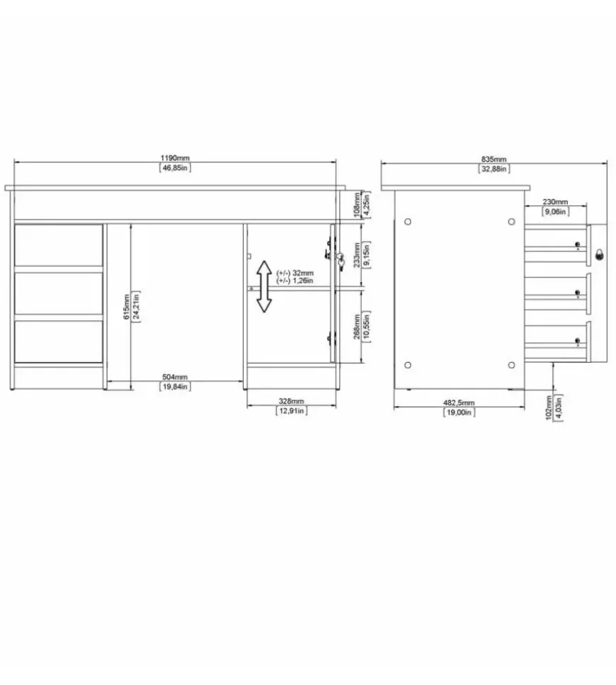 - Scomparto chiuso con ripiano regolabile