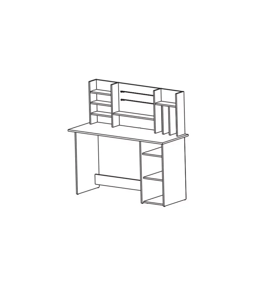 La scrivania presenta sulla parte destra un’anta che nasconde 3 ripiani di cui 1 ripiano regolabile.